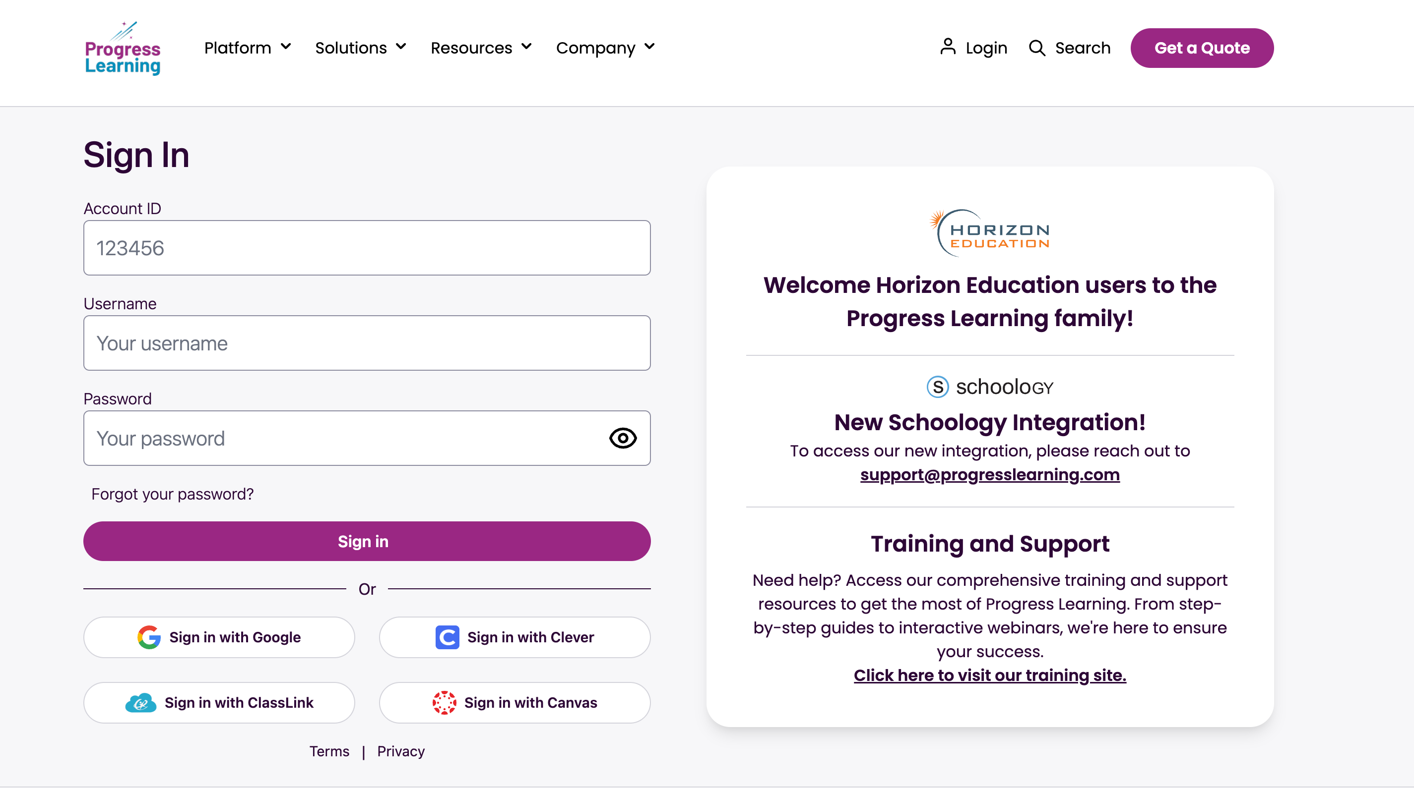 If you are unable to log in, please send an email to support@progresslearning.com.