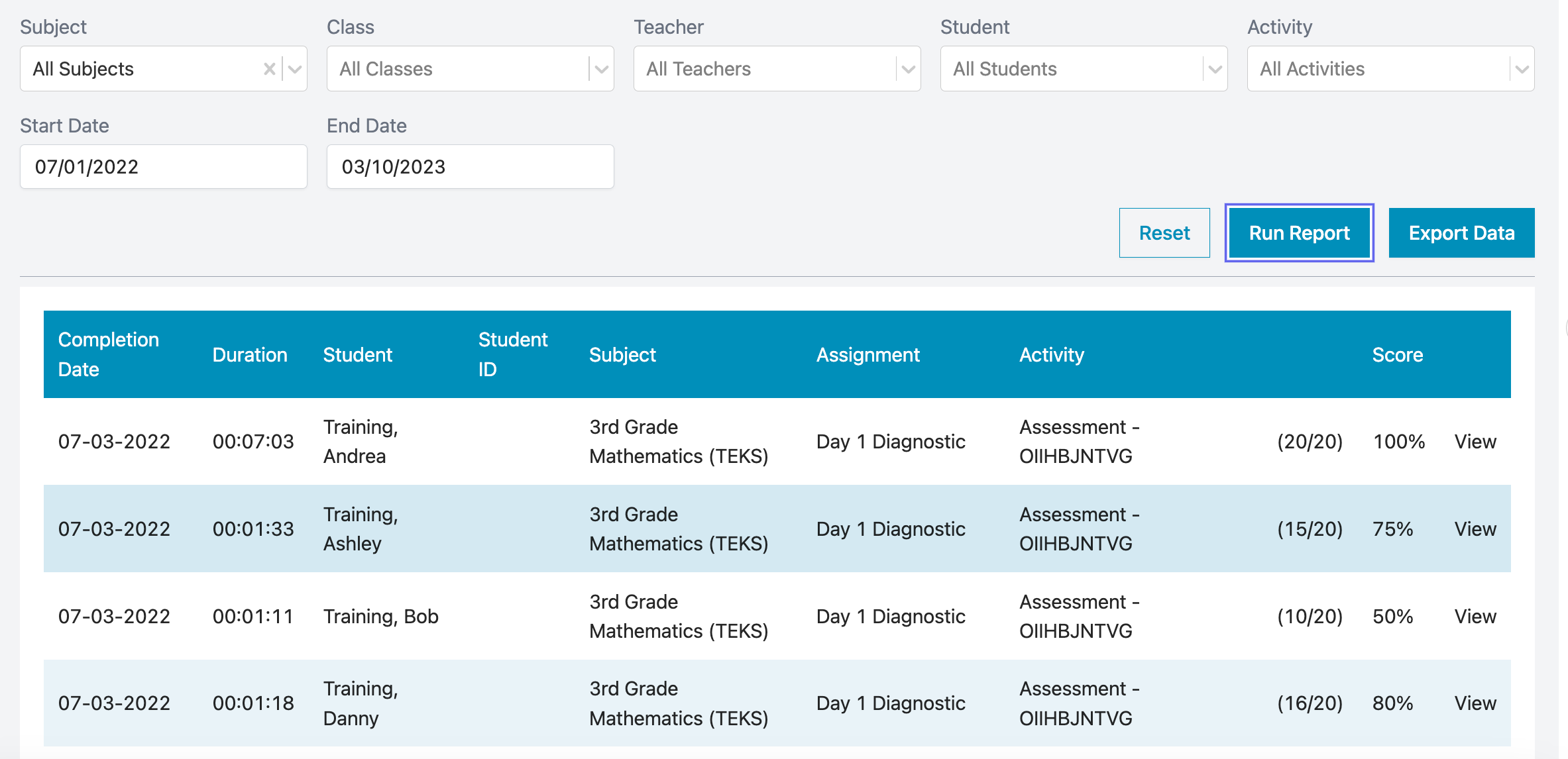 • Exportable or Printable? Export the Student Summary and/or the Activity Details