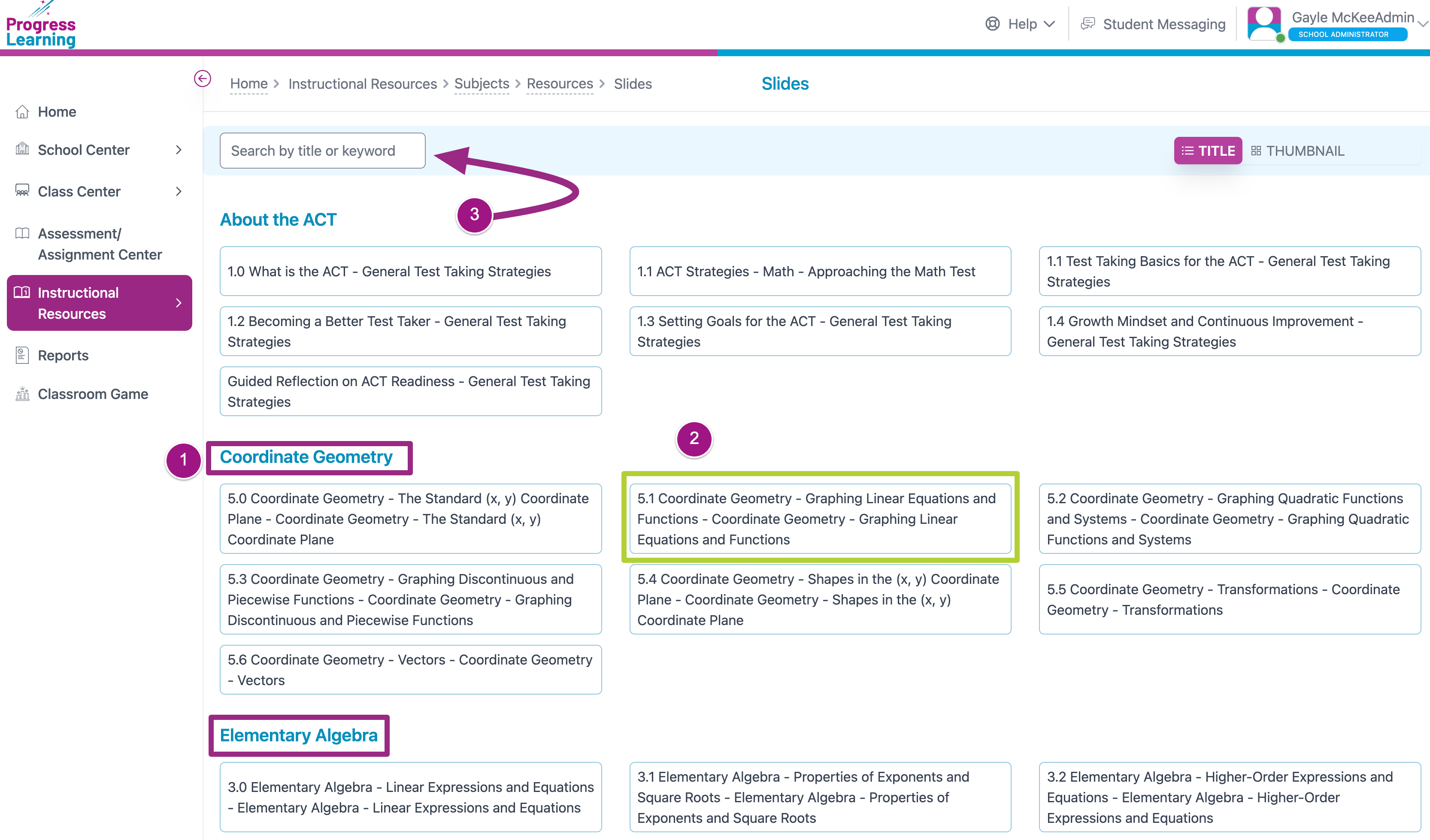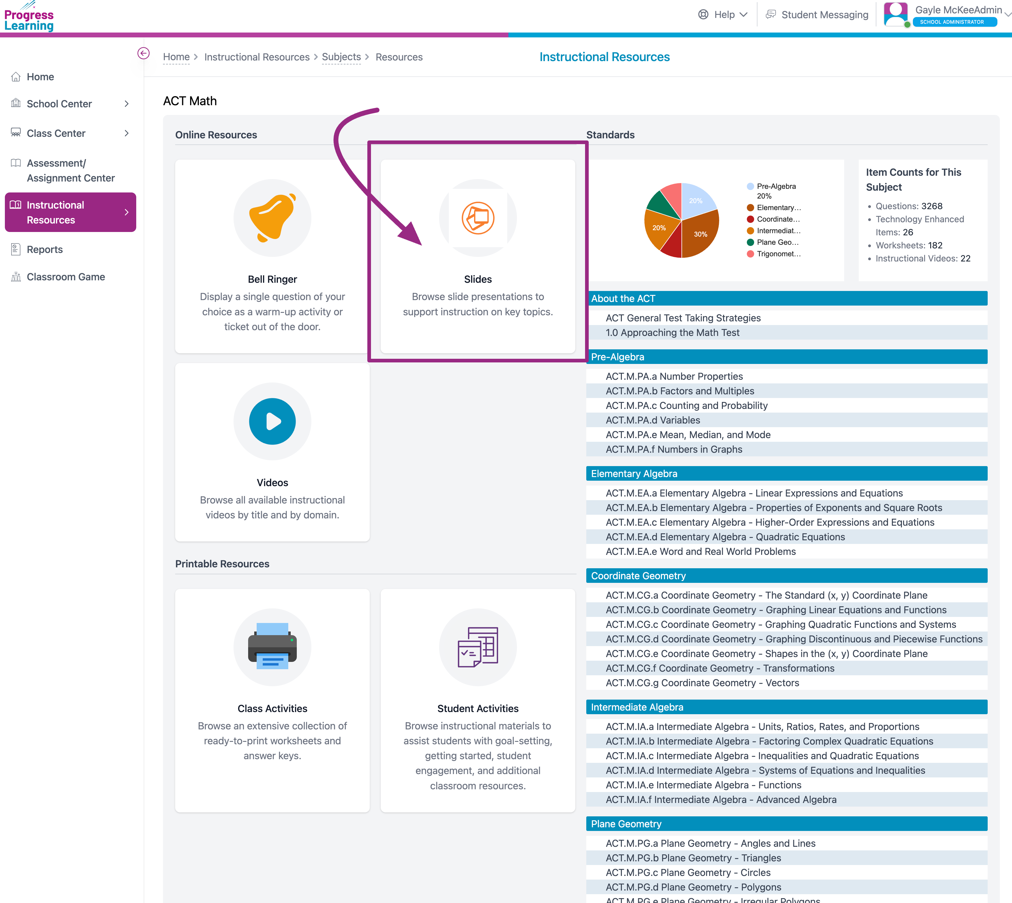 - This feature provides you with easy access to so many Progress Learning created resources in areas such as: