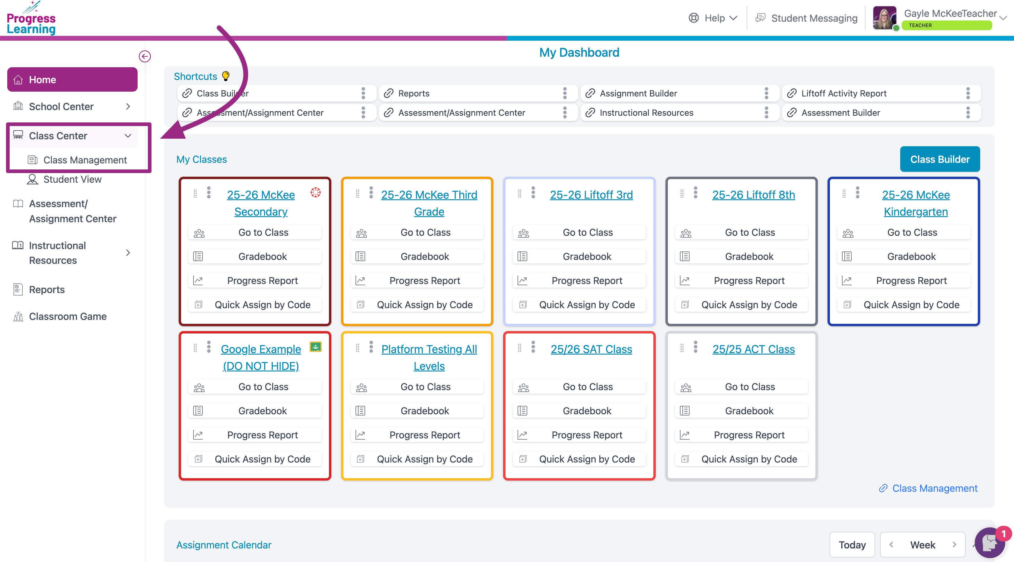 - Click Class Center and then select Class Management on your teacher dashboard.