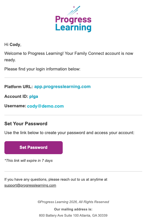 ⚠️ The password setup link expires after 7 days.