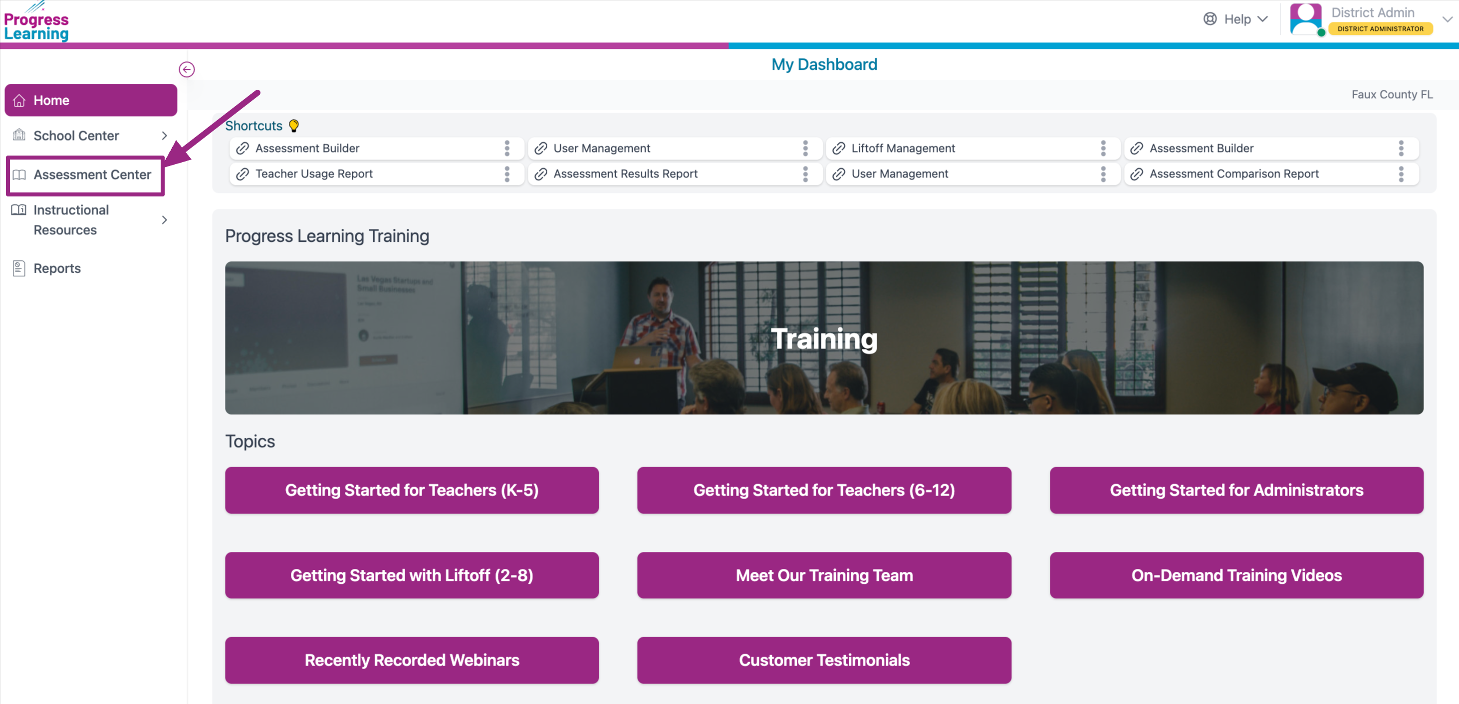 From your dashboard, navigate to the Assessment Center