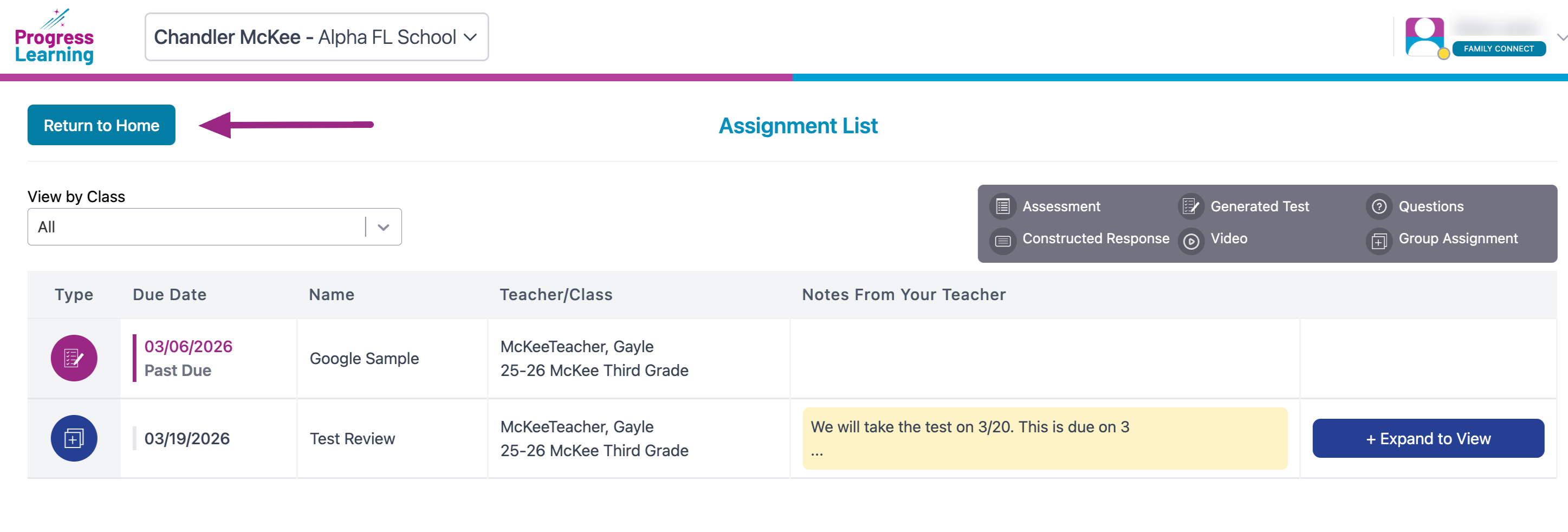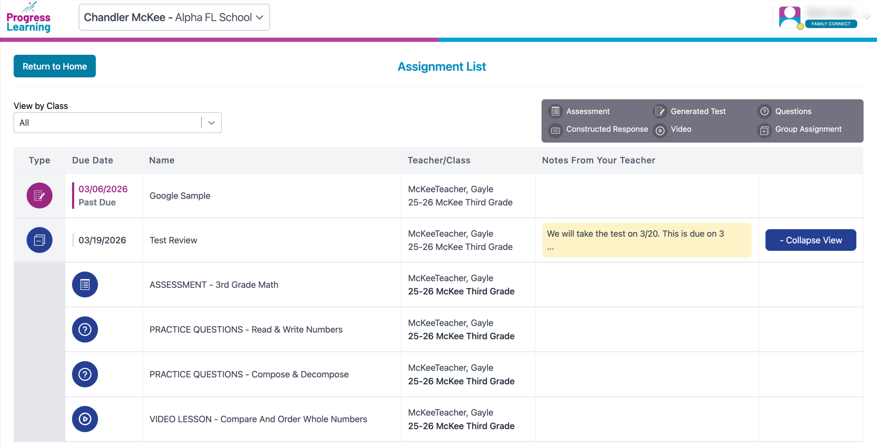 Welcome to Family Connect- a way for you to stay connected to your student's growth in Progress Learning.