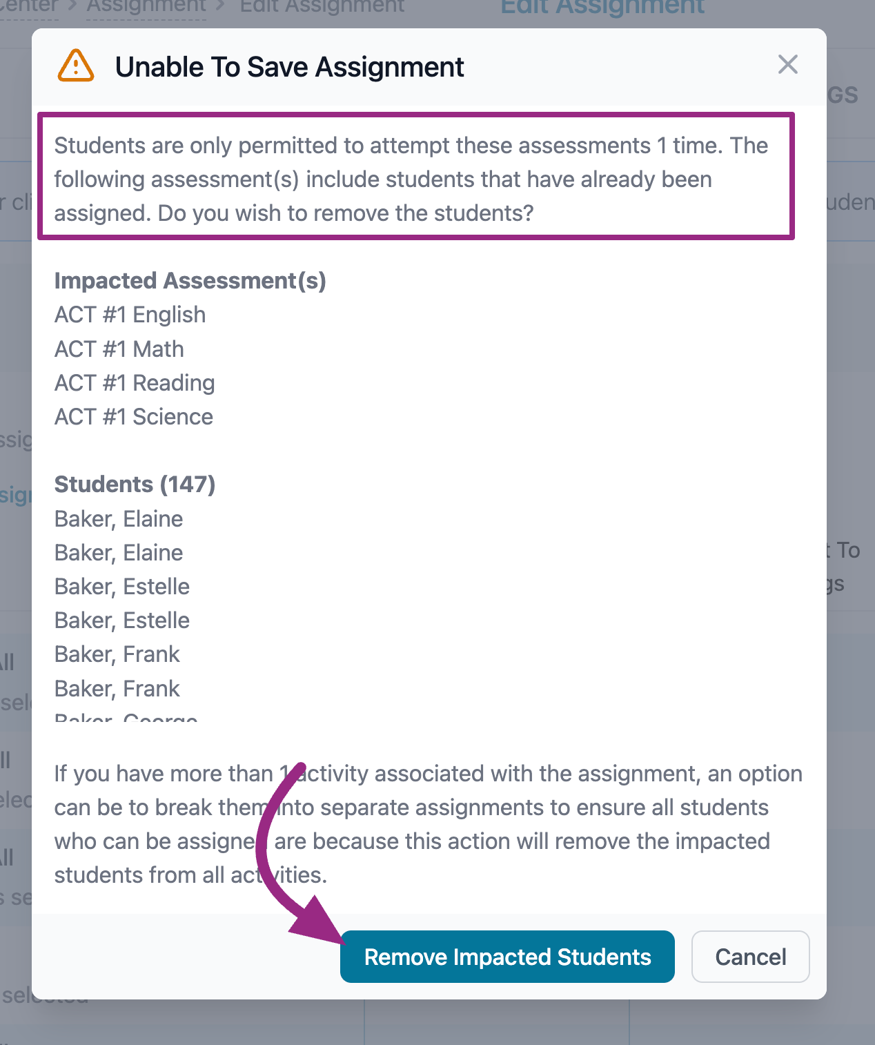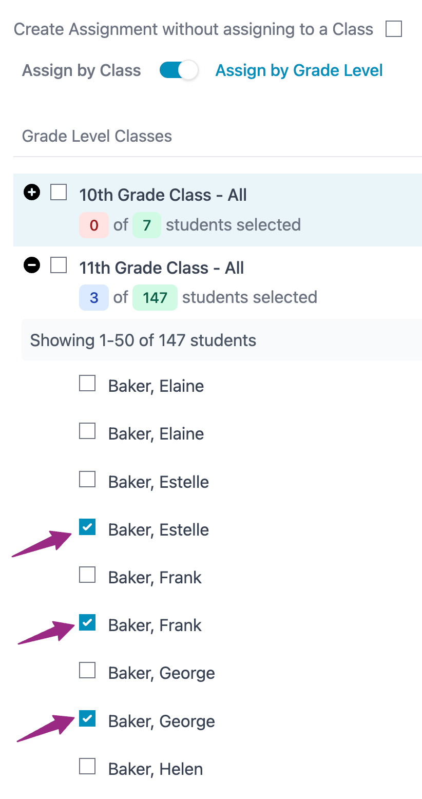 - Create a new assignment and reassign it to the entire class or grade level (our platform will not assign the assessment to any student who has already completed it).