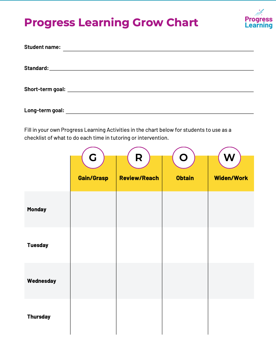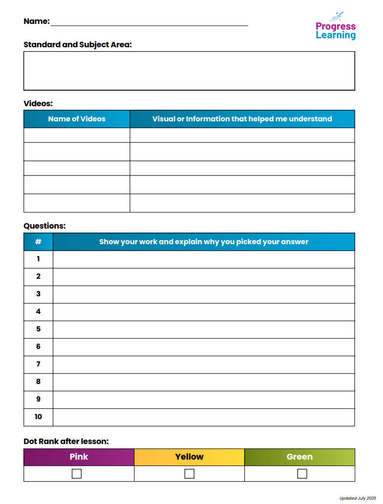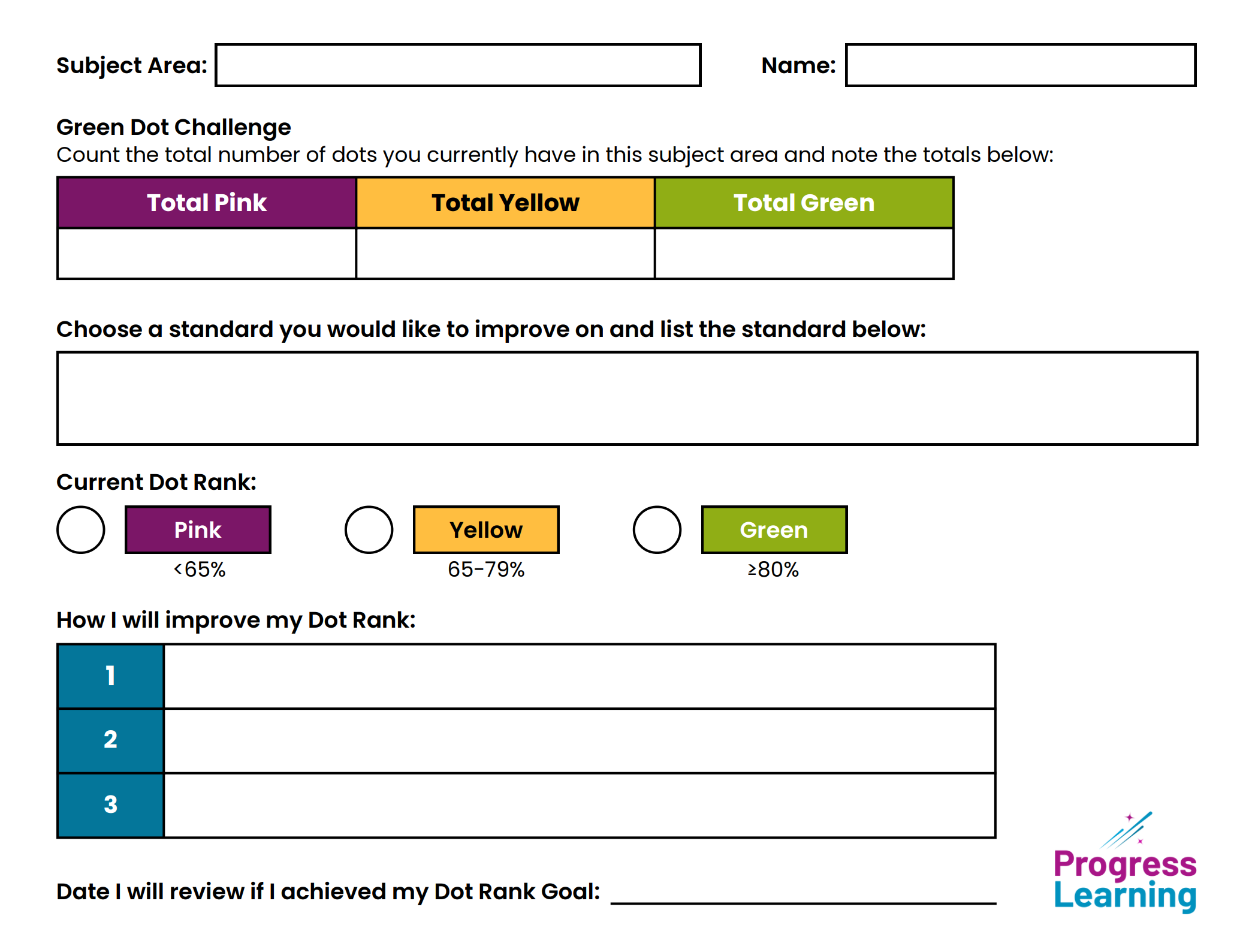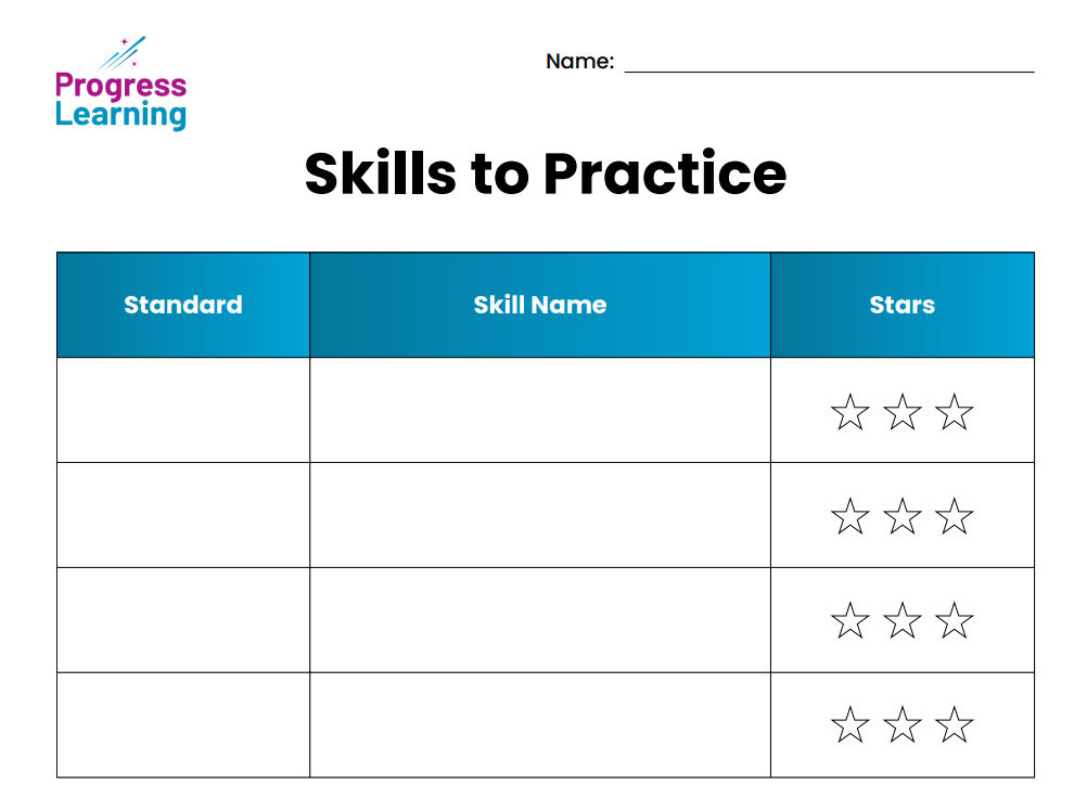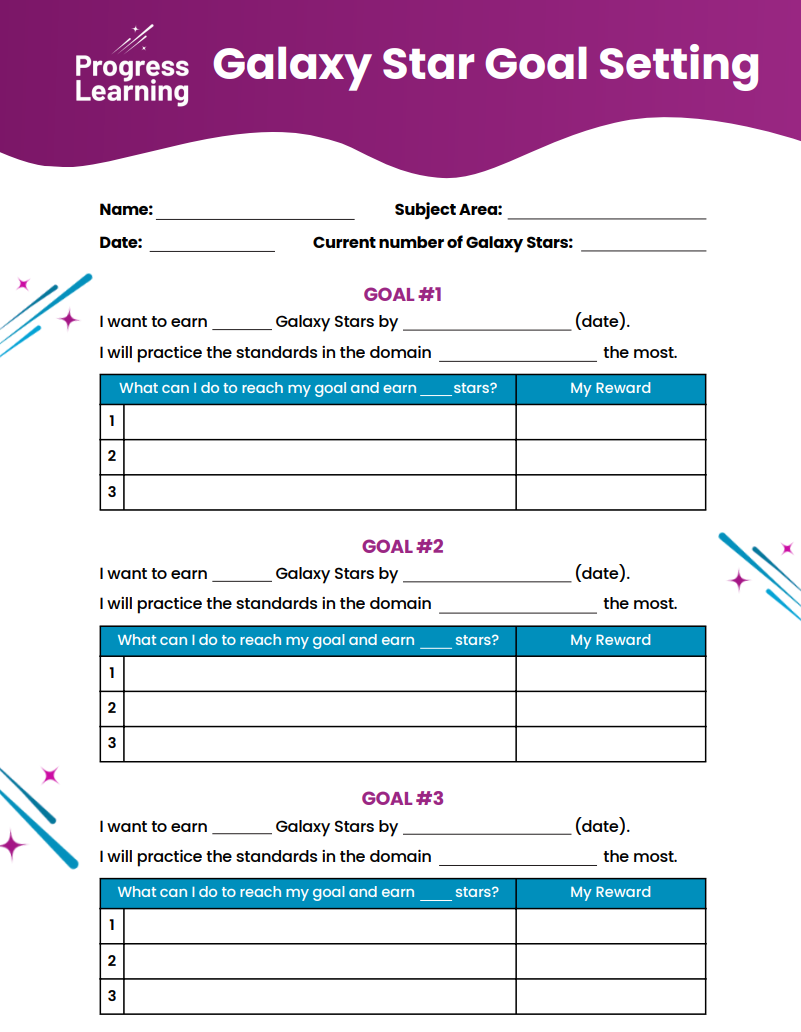 K-1st Grade Student Study Plan Goal Sheets