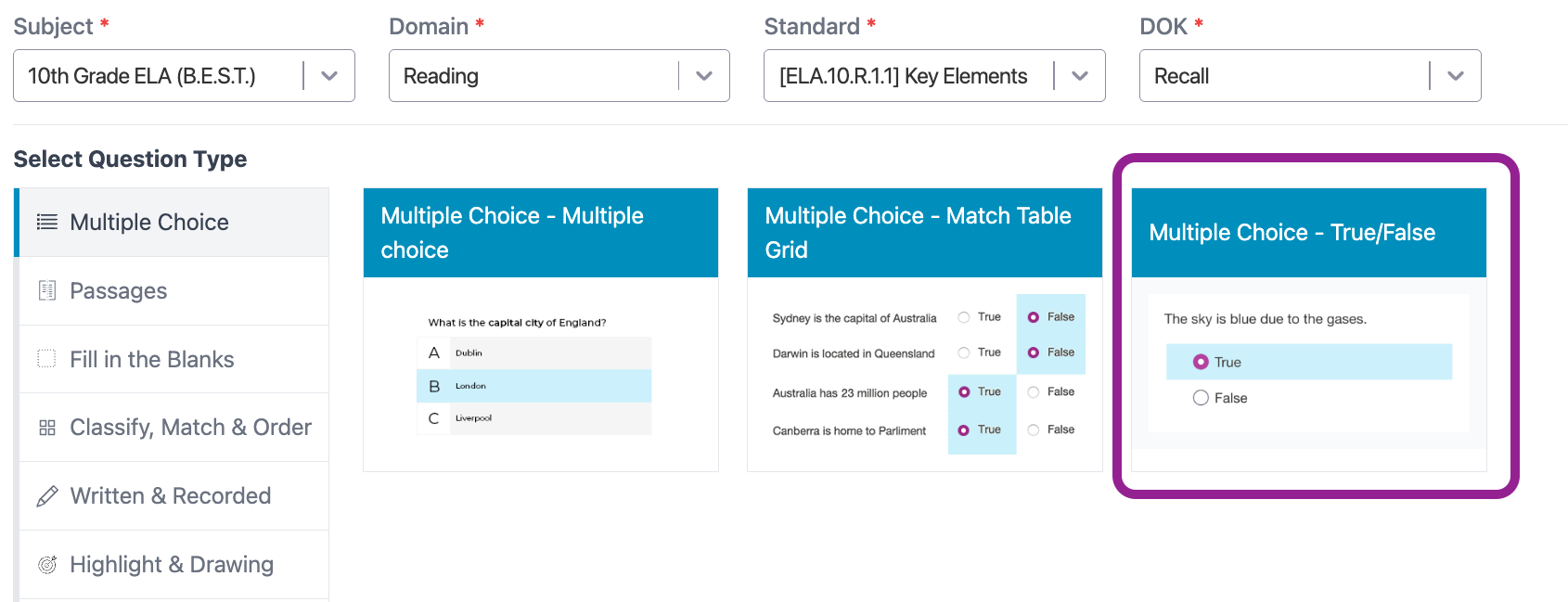 We have added the ability to author your own True/False question within Question Builder!