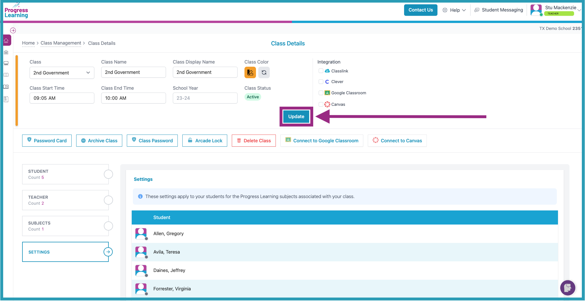 - Archive Class: It will be hidden from on you Dashboard, but the results and data will still be there.